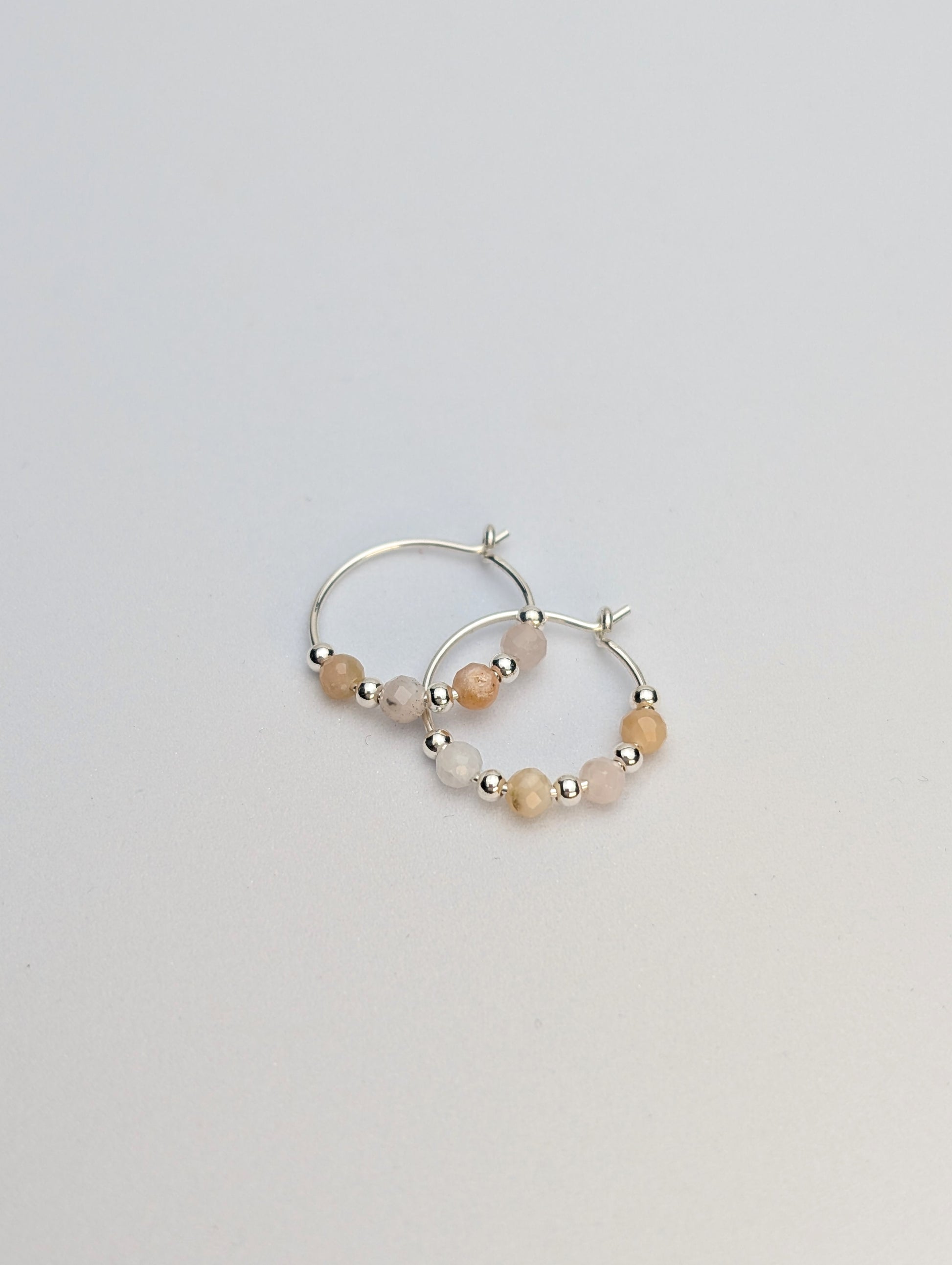 These beautiful sterling silver hoop earrings feature 3mm pink opal gemstone beads paired with 2mm sterling silver beads. Pink opal is often associated with emotional healing, tranquility, and compassion, believed to bring gentle energy that soothes the heart and nurtures self-love.